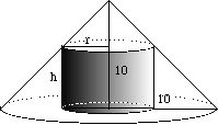 7 In einem senkrechten Kreiskegel mit dem Grundkreisradius und der Höhe 10 cm soll ein senkrechter Kreiszylinder mit dem Radius r cm einbeschrieben werden.